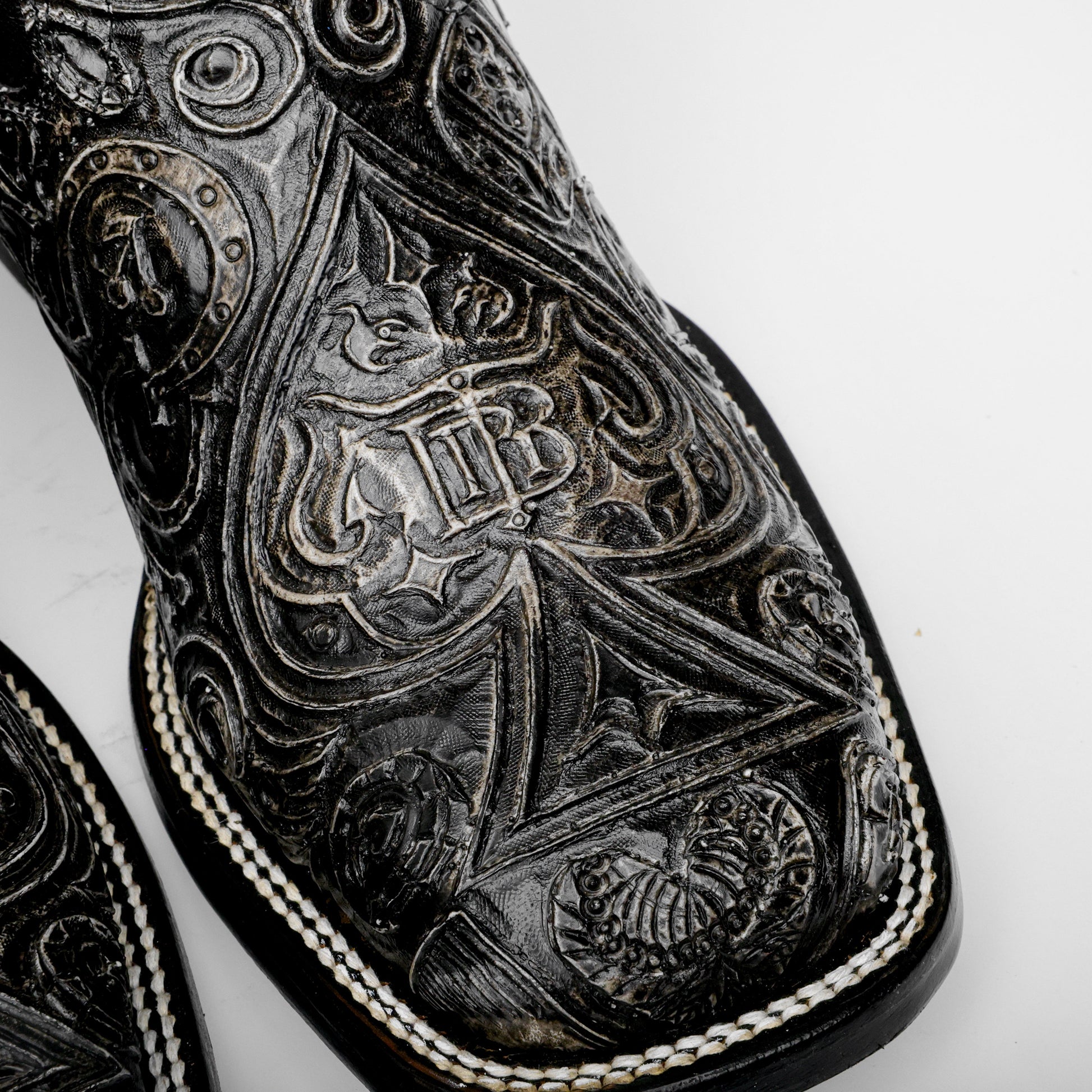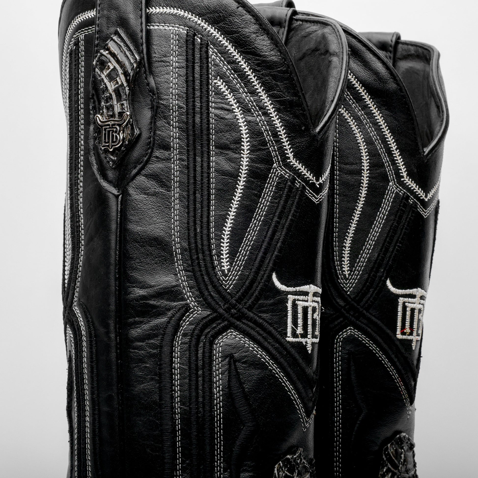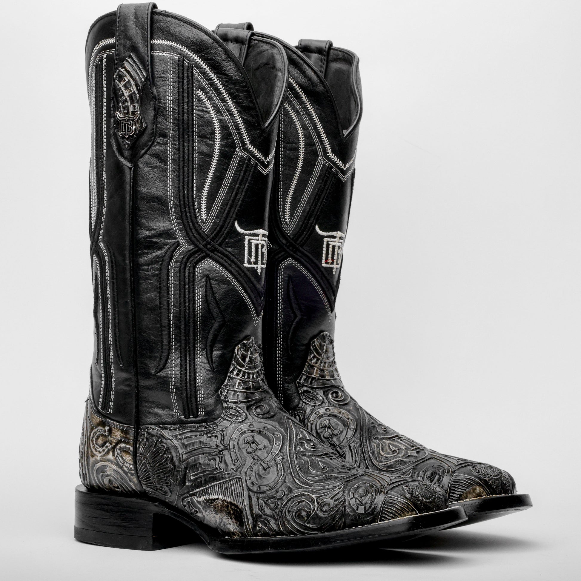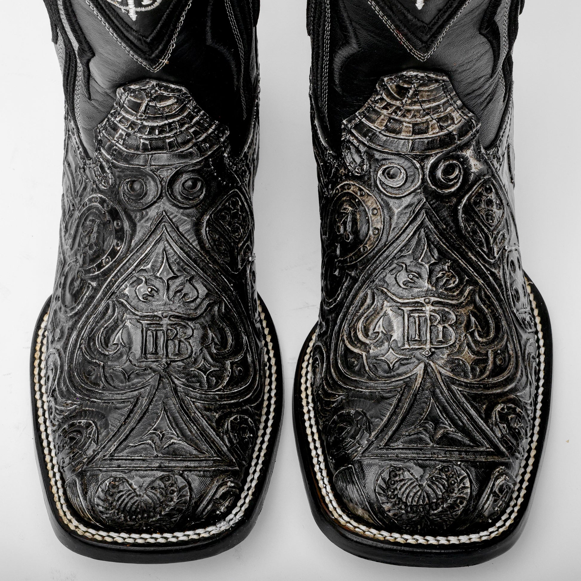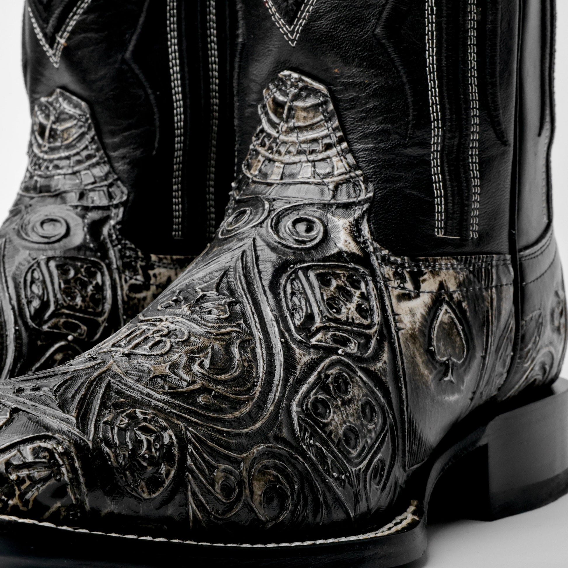 “Ace Of Spades” GreyBlack Leather Boots - Square Toe