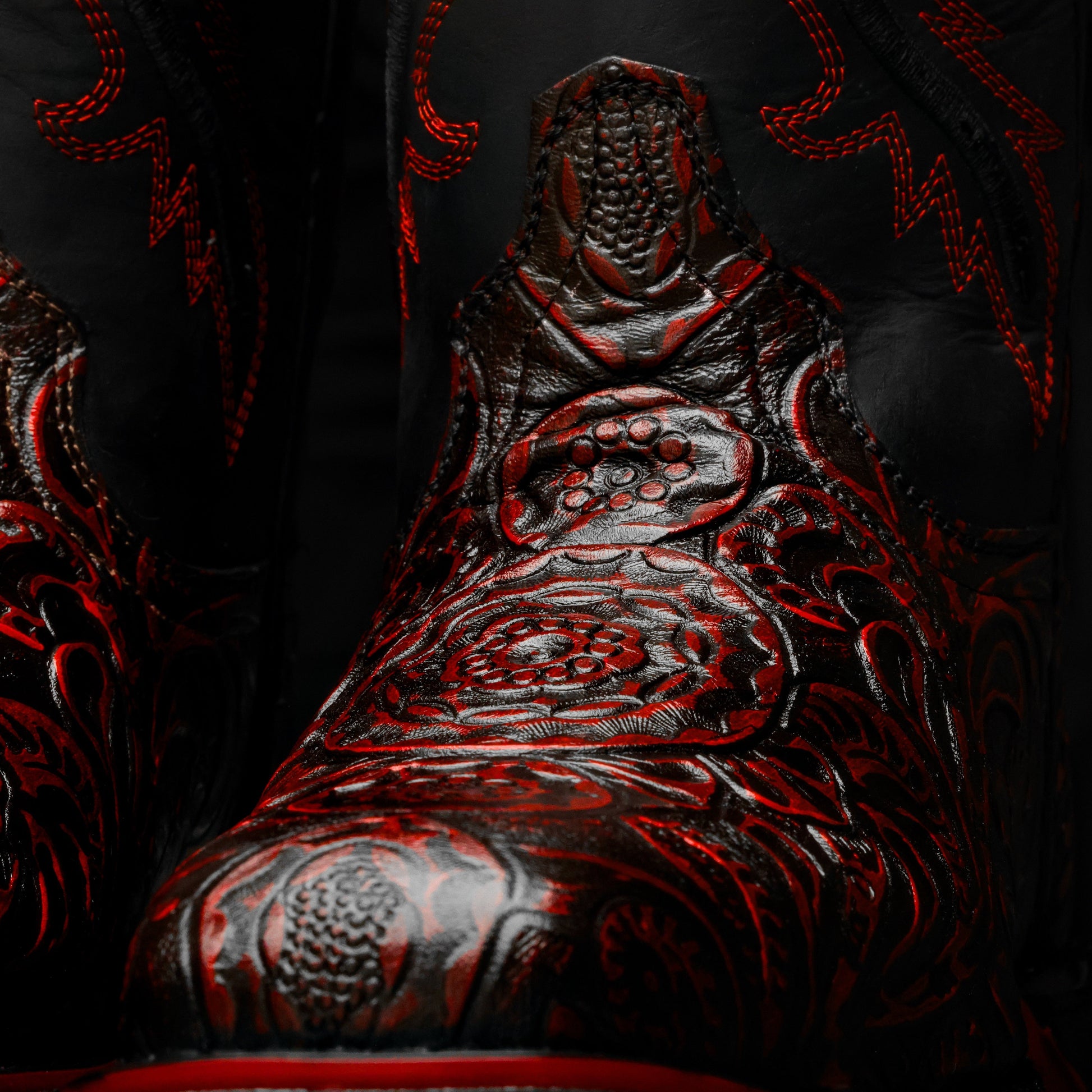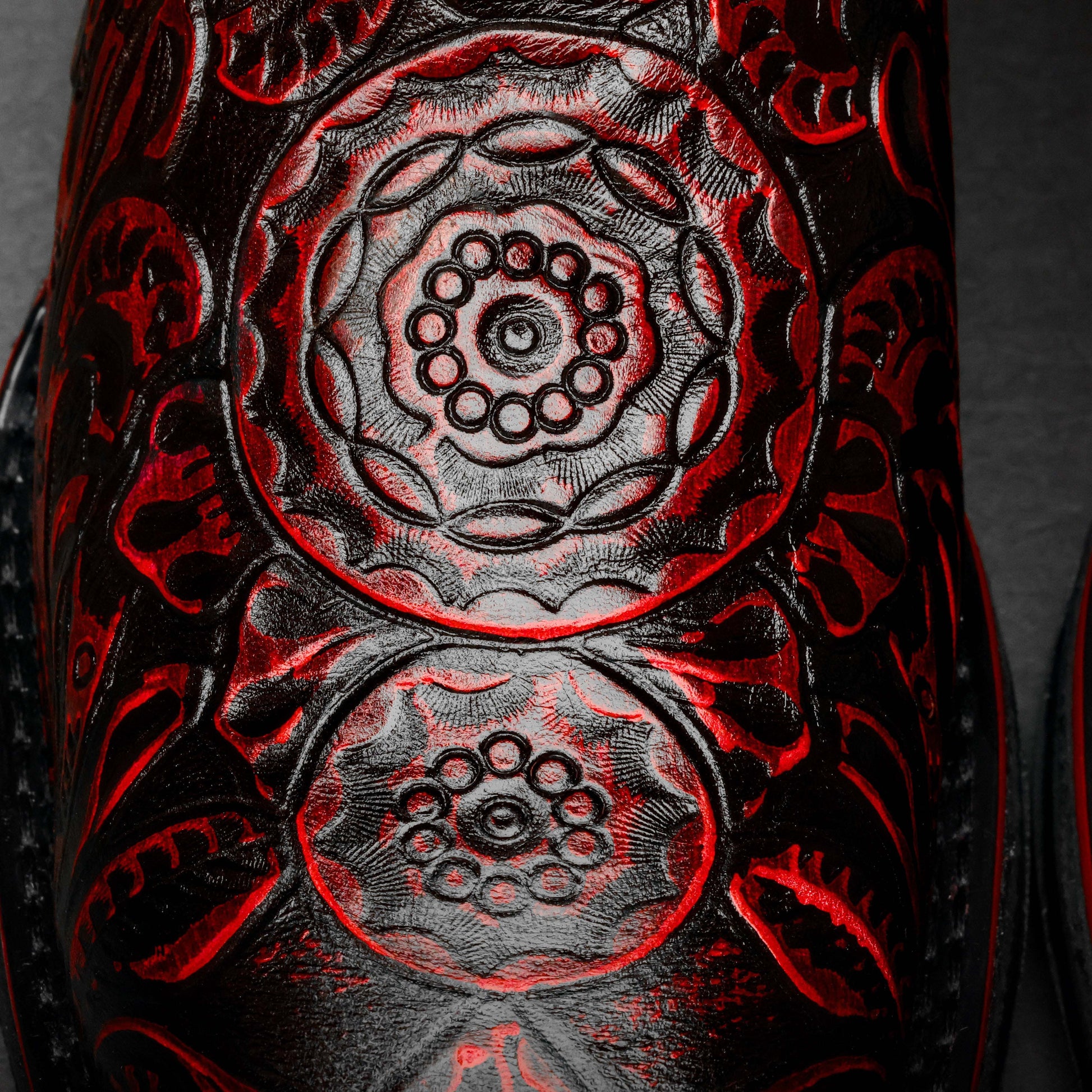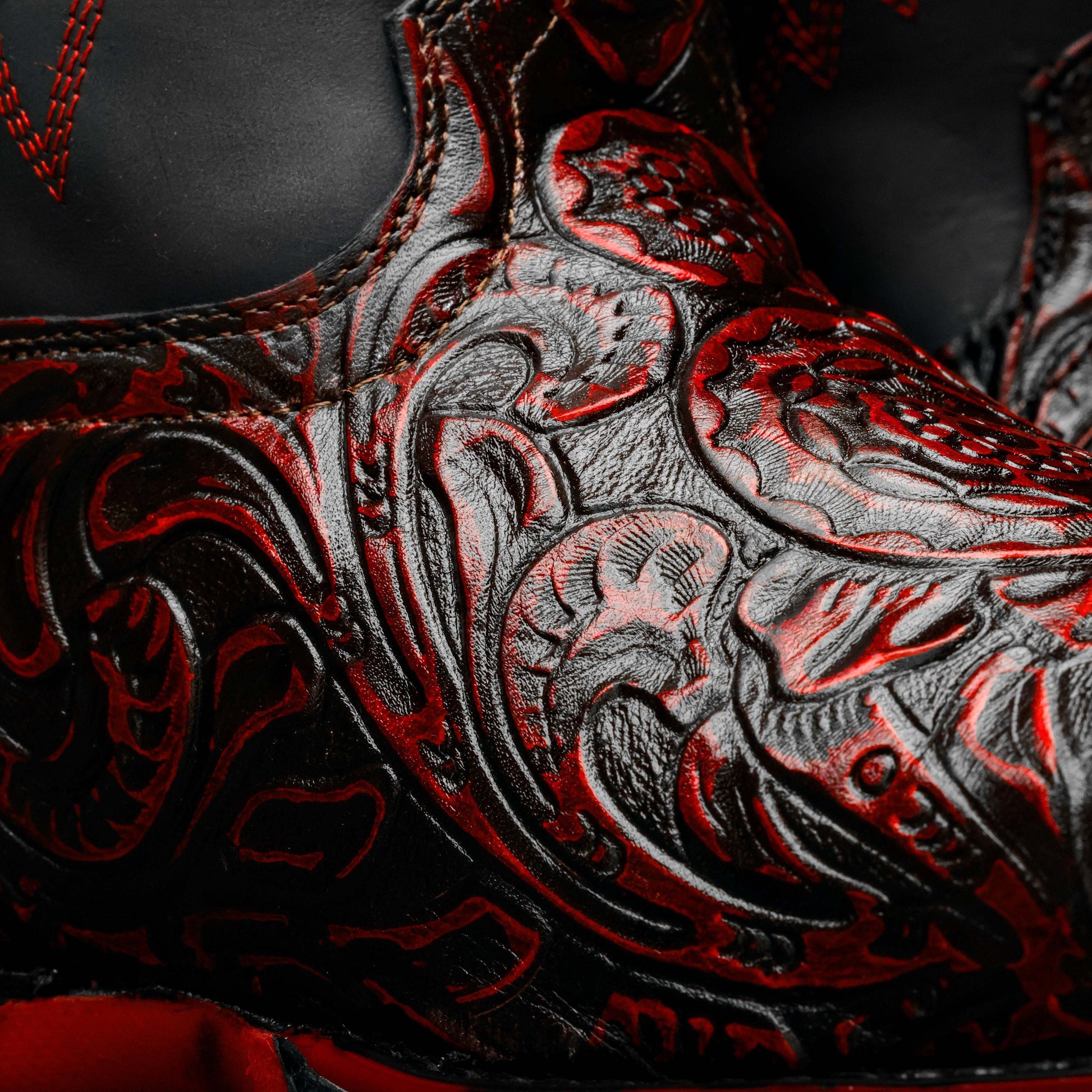 Black Cherry Hand-Tooled Leather Boots With 3D Lightweight Sole - Composite Toe