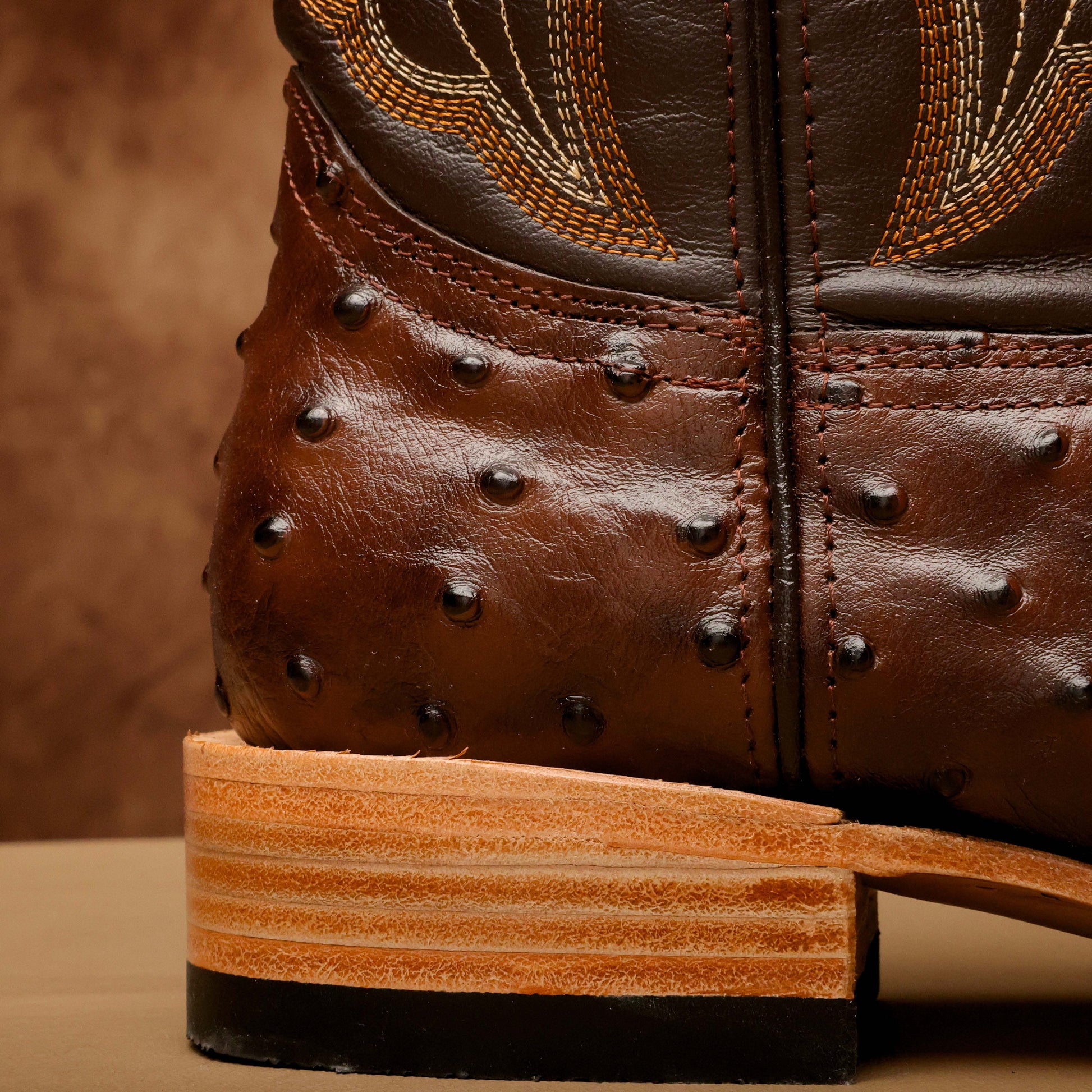 Chocolate Brown Ostrich Leather Boots - Square Toe