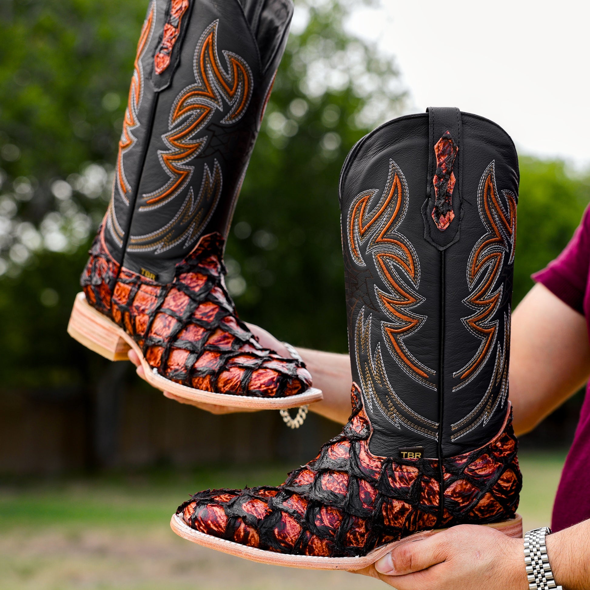 Cognac Jumbo Pirarusu Leather Boots - Square Toe