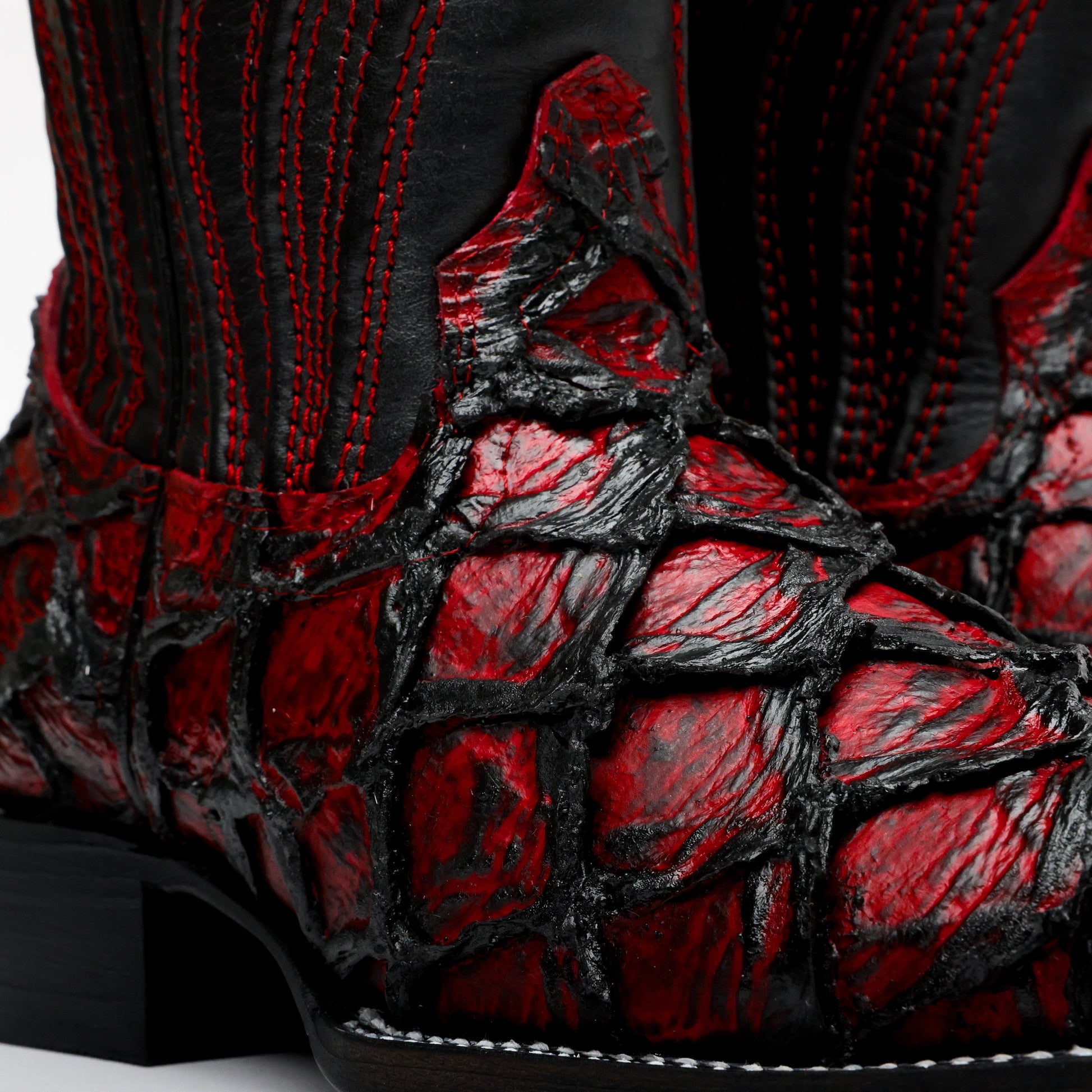 Jumbo Pirarucu Leather Boots In Black Cherry – Square Toe Design
