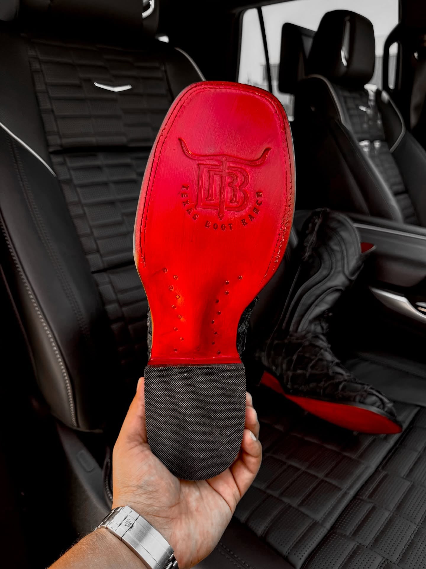 Matte Black Jumbo Pirarucu Leather Boots - Square Toe