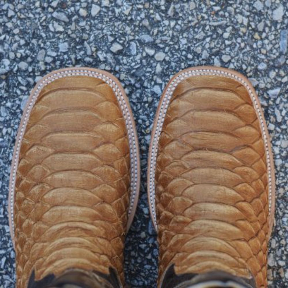 Men Print Jumbo Python Matte Honey Square Toe Boots
